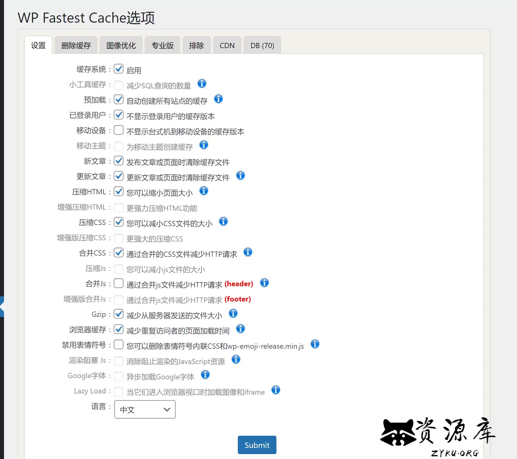 - 管理员可以从选项页面删除缩小的css和js文件