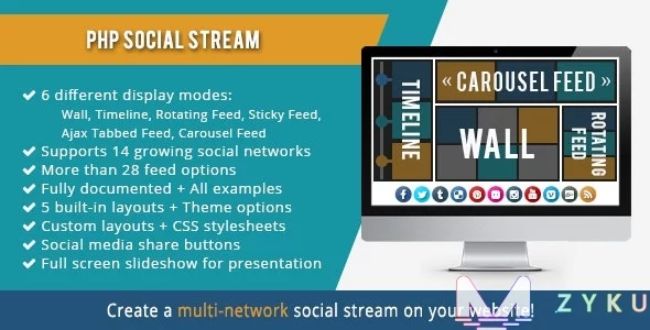 使用此脚本,您可以创建一个时尚迷人的社交媒体源,包括多个社交媒体帐户和页面,并可以将它们以6种不同的布局显示,包括墙壁,时间轴,旋转源,旋转源,Ajax Tabbed Feed和粘性源。